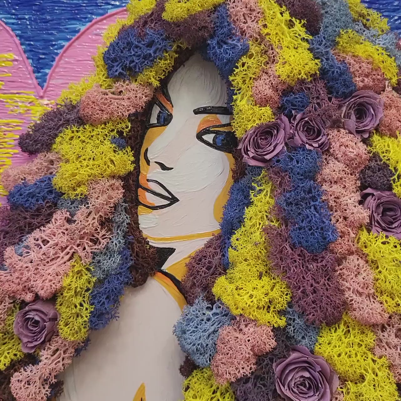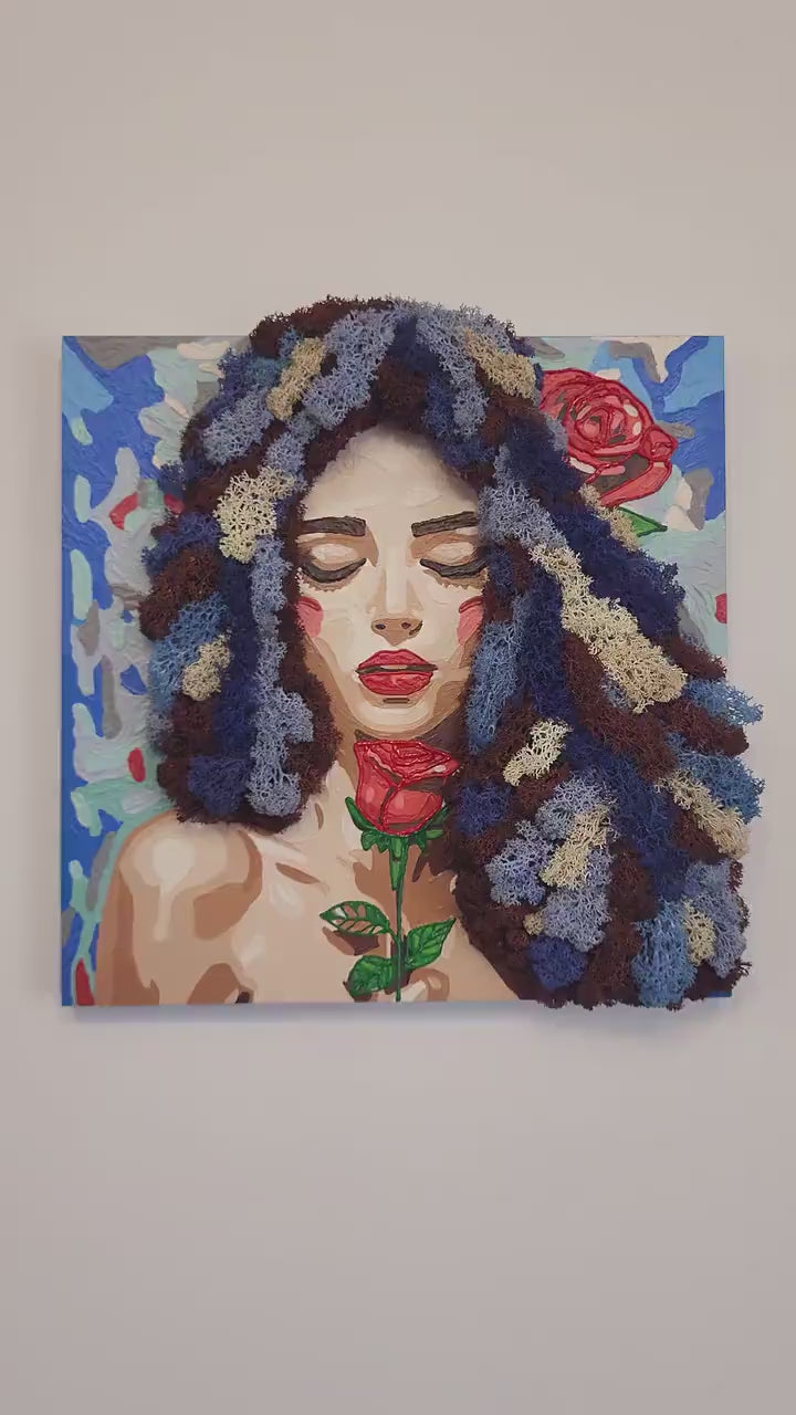 Moss Painting “Lavender Dreams” | Elegant Woman Wall Hanging Decor
