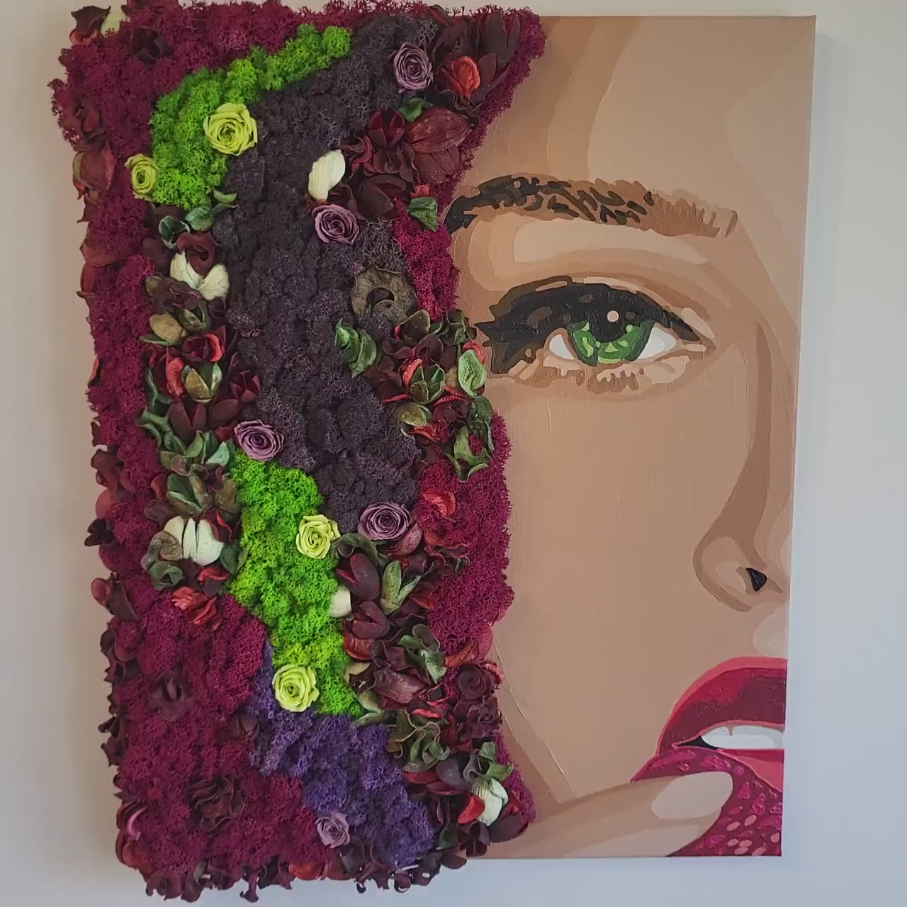 Moss Flower Wall Art – Preserved Floral Moss Panel | Eco Botanical Decor & Vertical Garden Frame
