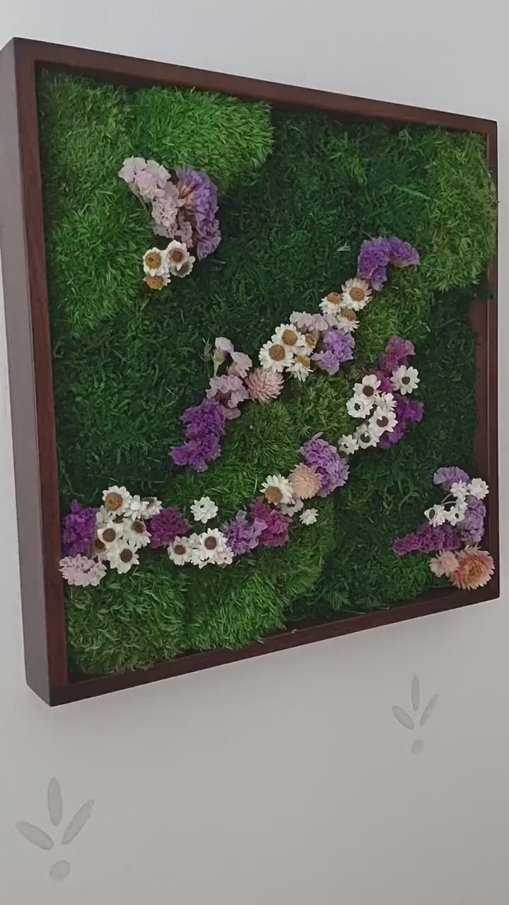 Moss Wall Art with Flowers – Preserved Green Moss Art, Handmade Botanical Wall Décor, Living Moss Picture, Unique Natural Home Accent