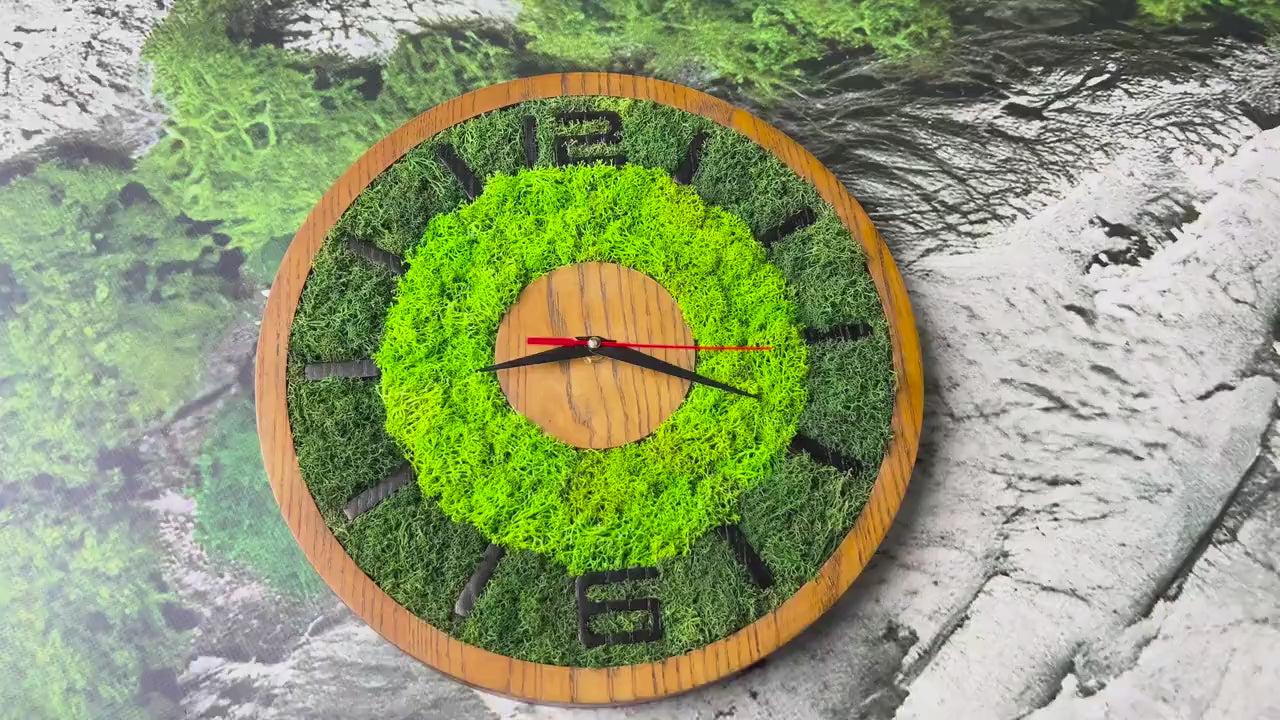 Moss Wall Clock – Handmade Wooden Clock with Real Preserved Moss – Unique Nature Wall Decor & Gift