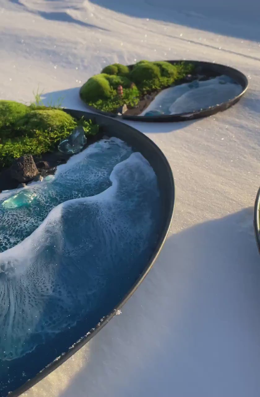 Framed Moss and Resin Sea Art – Botanical Ocean Wave Wall Decor for Coastal Home & Office