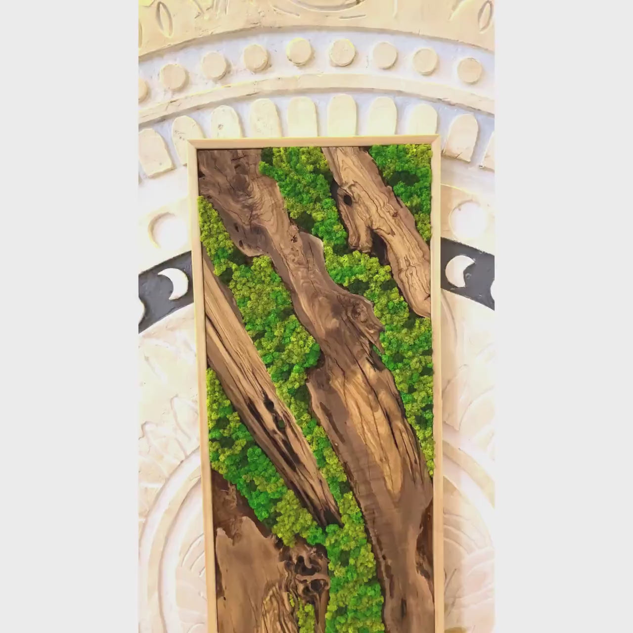Handcrafted Olive Wood & Moss Wall Art – Preserved Moss Wall Decor & Natural Wall Hanging
