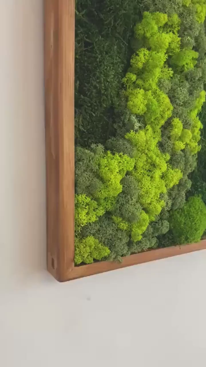 Large Moss Wall Art – Handmade Preserved Green Wall Decor with Wooden Frame