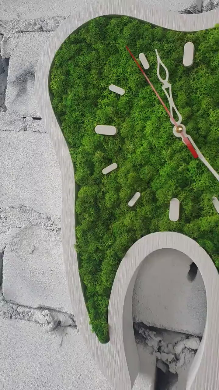 Tooth Shaped Moss Clock – Eco Friendly Wall Art for Dental Office Decor