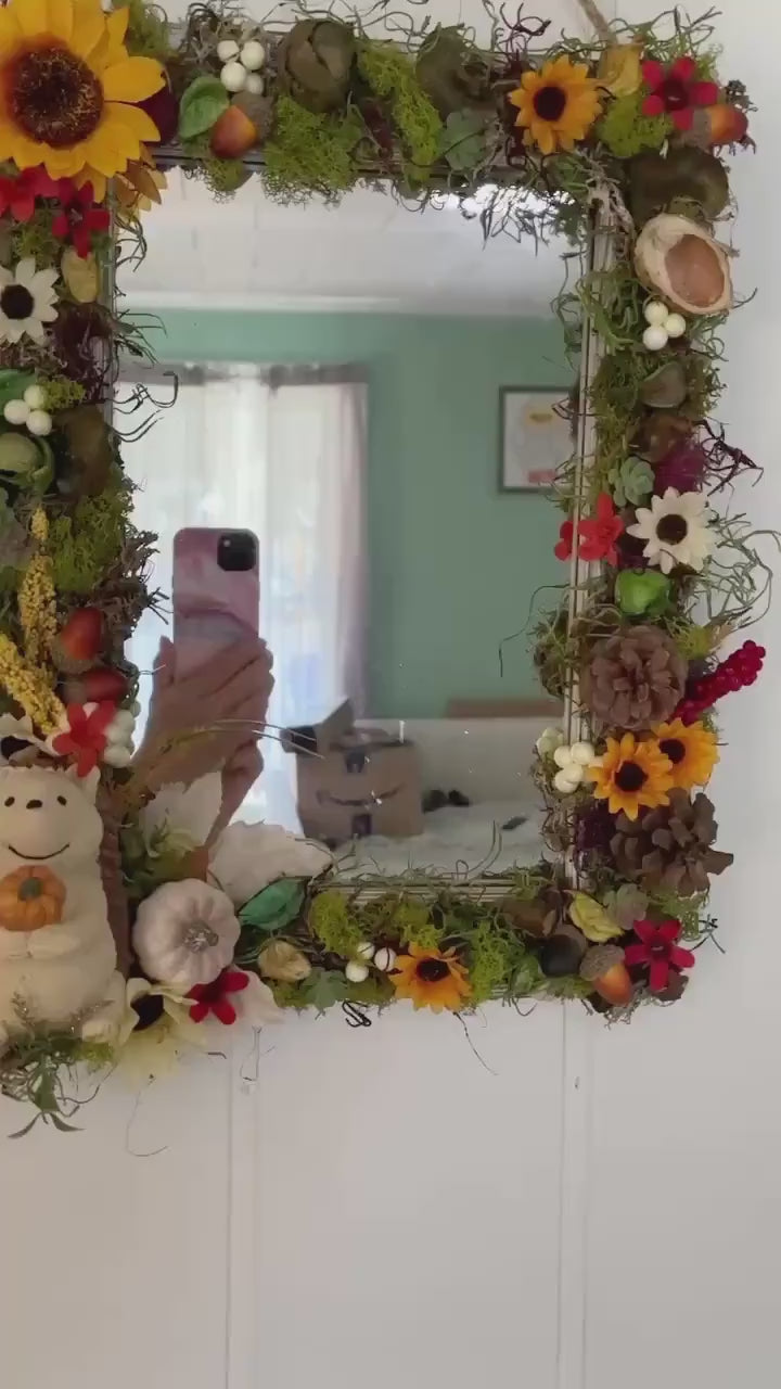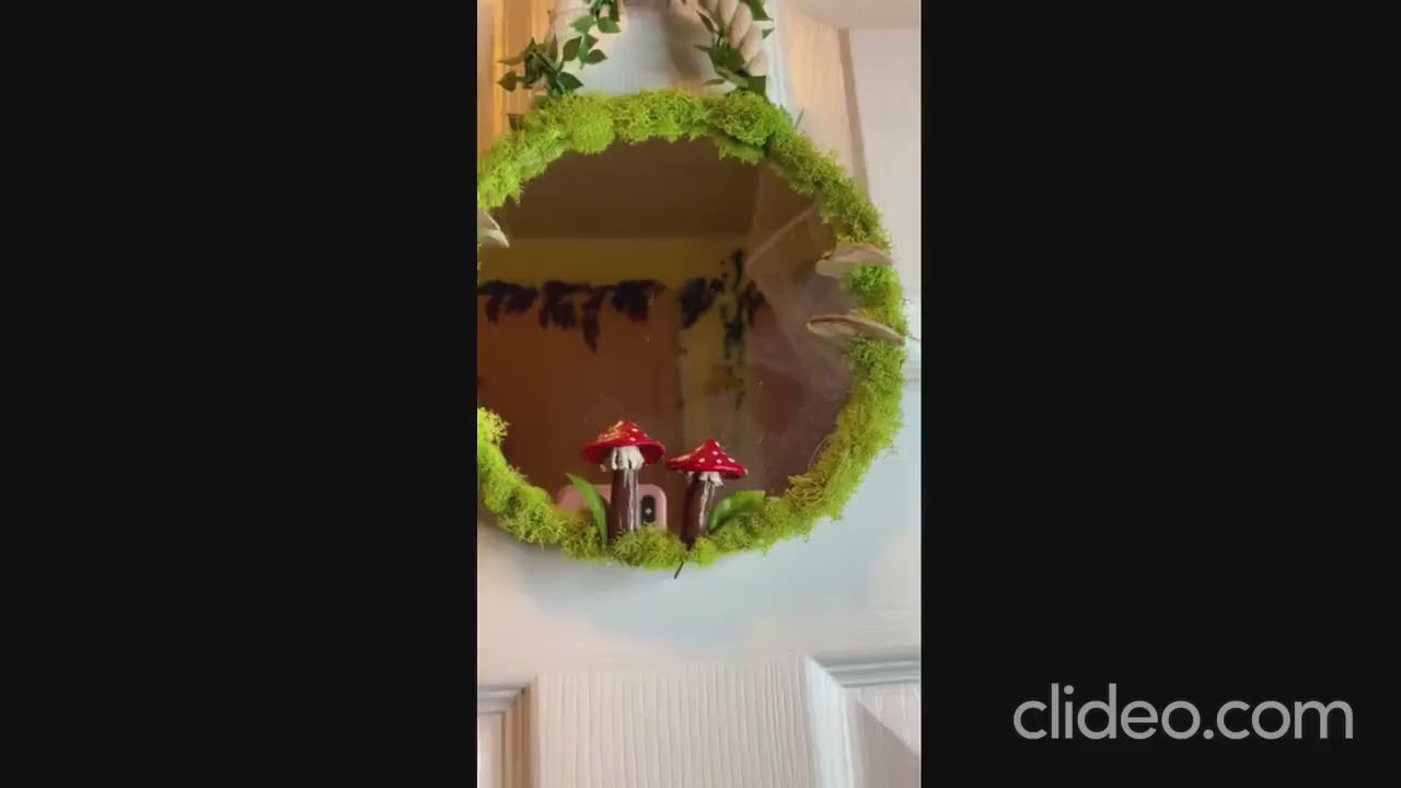 Fairycore Mossy Mirror with Crystals and Shells – Enchanted Home Accent