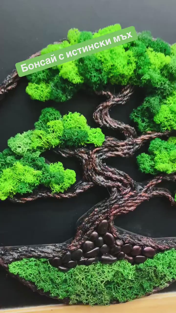 Bonsai Tree Moss Wall Art – Preserved Scandinavian Moss in Wooden Frame (40×40–50×50 cm)