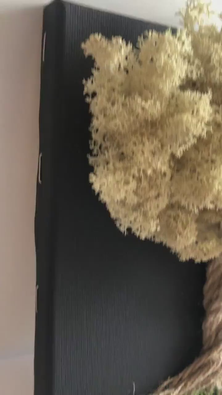Bring the serene beauty of the forest indoors with this unique White Moss Tree of Life wall art. This stunning piece is crafted using live preserved moss on a stretched canvas with a black background, creating a beautiful contrast that makes the intricate tree design stand out.