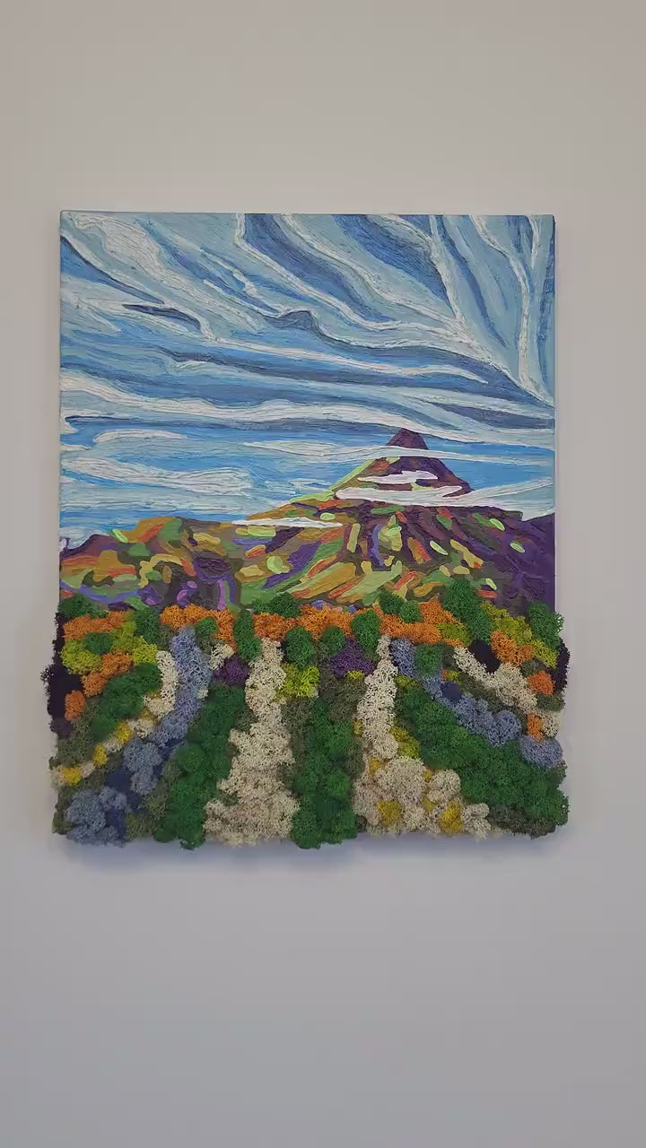 - Unique Design: A captivating mountain landscape created with preserved, eco-friendly moss and vivid acrylic textures.