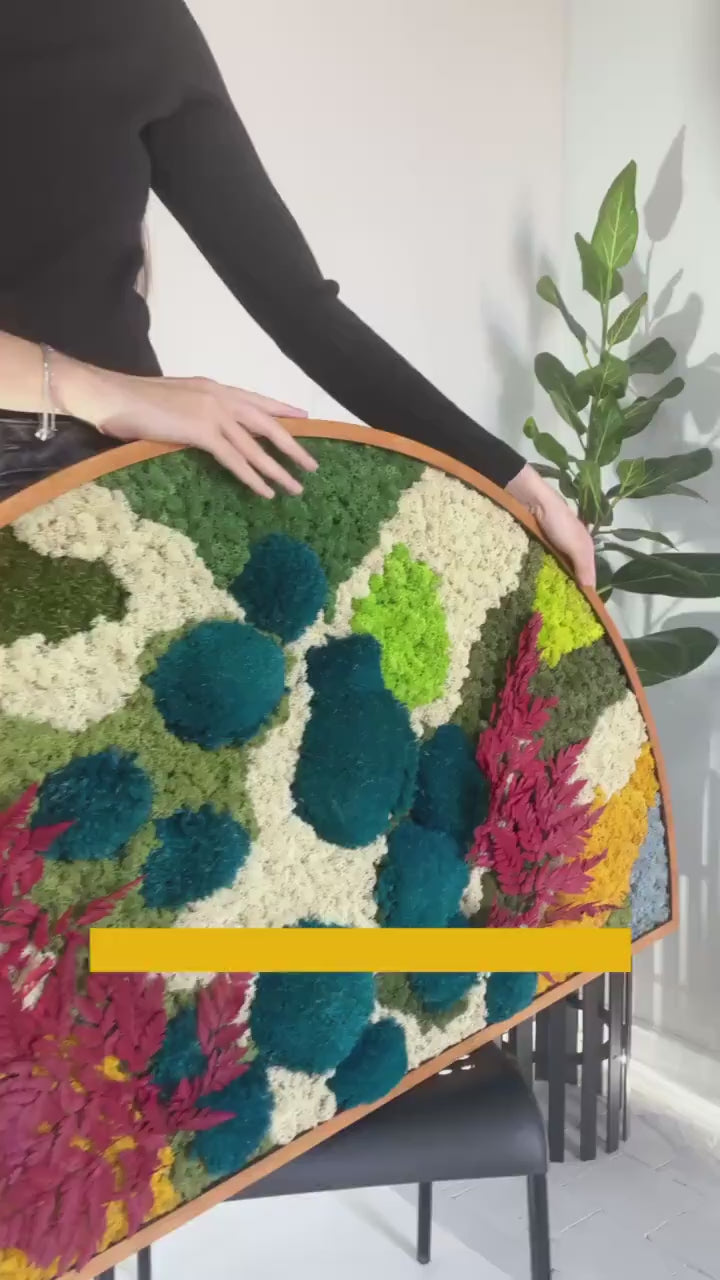 Keep your moss wall art away from direct sunlight, air conditioning vents, or heat sources to preserve its natural color and texture. Ideal placement is indoors, in a space with stable humidity and no direct airflow.