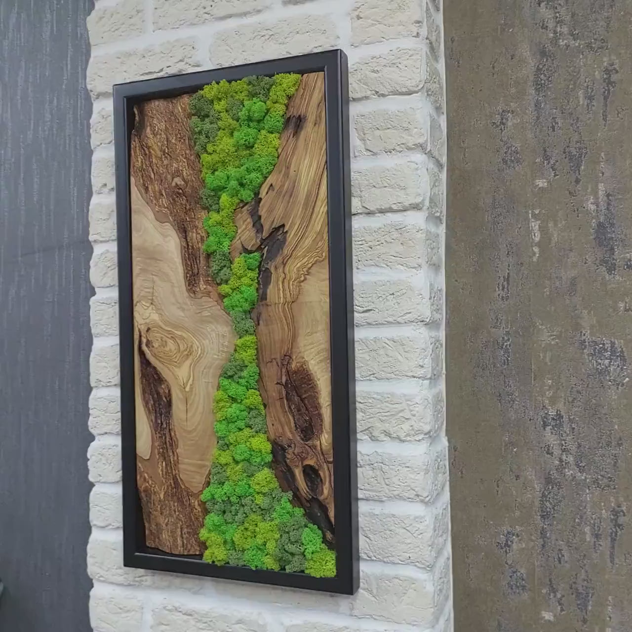 Handcrafted Moss Wall Art: Modern Wooden Wall Decor for a Natural Home