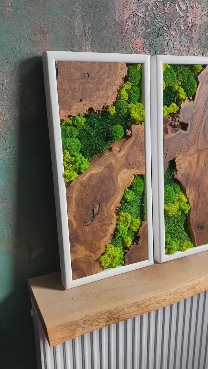 Handcrafted Olive Wood & Preserved Moss Wall Art – Live Edge Rustic Decor