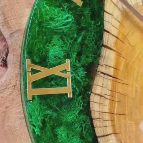 Handmade Moss Epoxy Wall Clock – Mulberry Wood Resin Art Timepiece