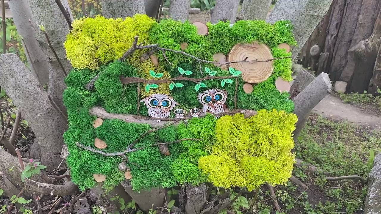 Handmade Wood Owls Moss Art | Minimal Scandinavian Décor