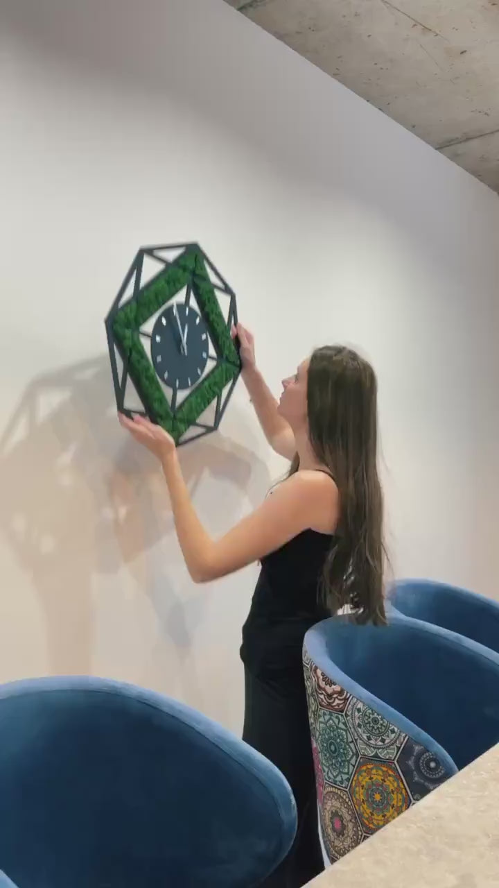Enhance your walls with this geometric moss wall clock — a seamless blend of art, function, and nature.