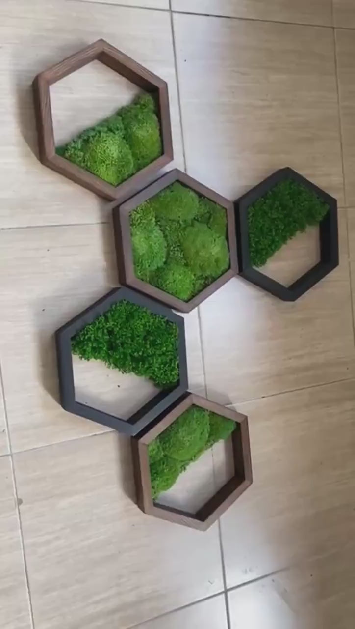Honeycomb Moss Wall Art – Hexagon Preserved Moss Decor for Home & Office, Unique Gift Idea