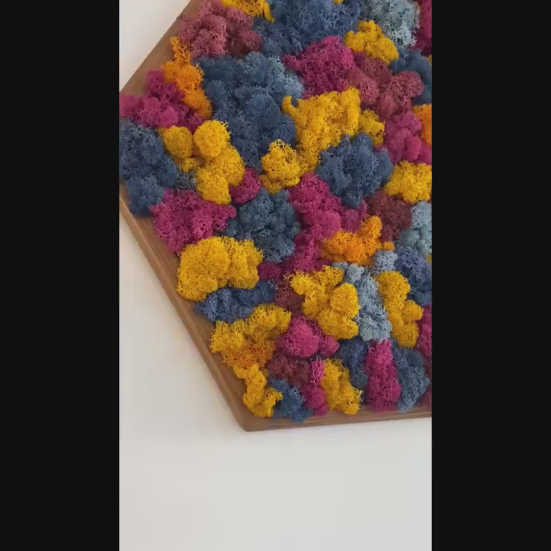 Add a burst of color and nature to your walls with this Colorful Hexagon Moss Wall Art. Handmade with preserved moss and quality wood, this honeycomb-inspired design brings modern style and eco-friendly elegance to any interior.