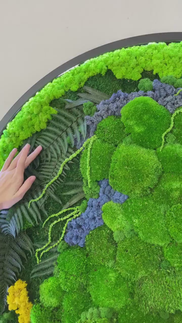 Bring a soothing natural element to your walls with this handcrafted large round moss wall art. Featuring lush preserved moss and natural ferns, paired with soft integrated LED lighting, it creates an elegant focal point for any interior. Maintenance-free and eco-friendly, it’s perfect for enhancing dining rooms, offices, or hospitality spaces.