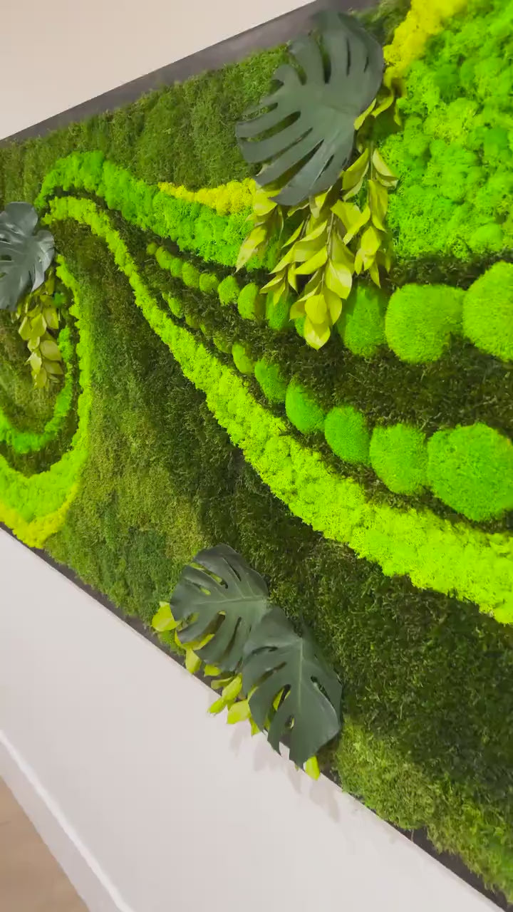 Keep your moss wall art away from direct sunlight, air conditioning vents, or heat sources to preserve its natural color and texture. Ideal placement is indoors, in a space with stable humidity and no direct airflow.