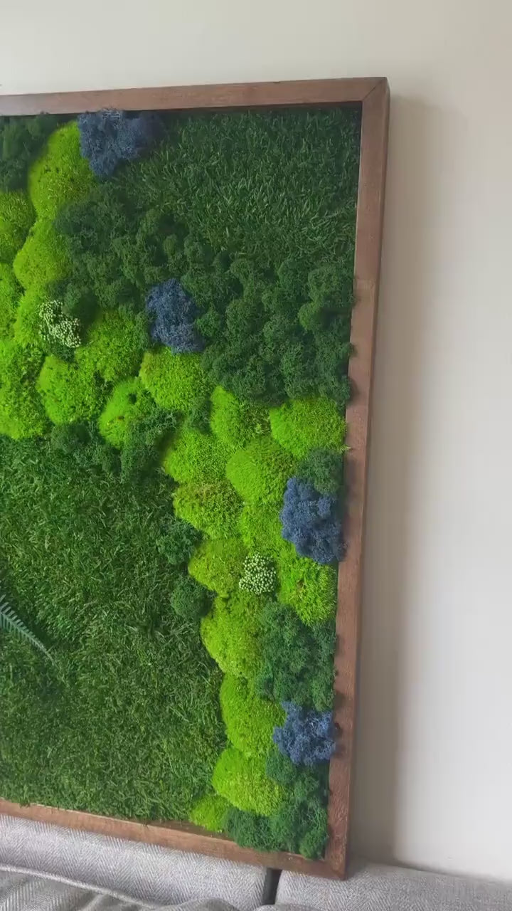 - Materials: Preserved reindeer moss, natural wood frame, hardware