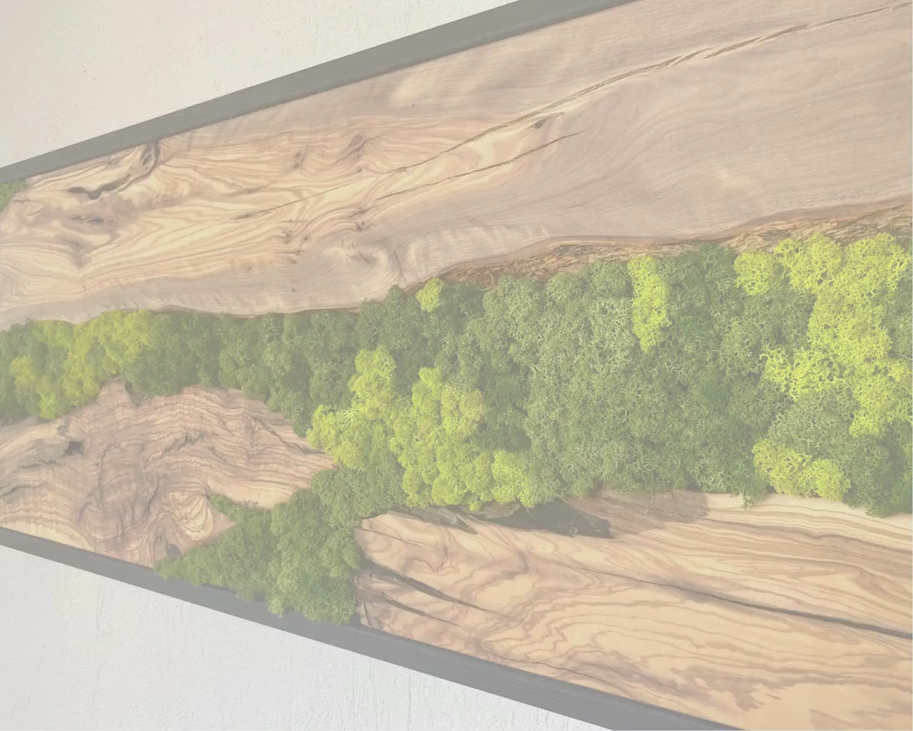 Moss Wall Art – Preserved Moss and Olive Wood Wall Decor for Living Room