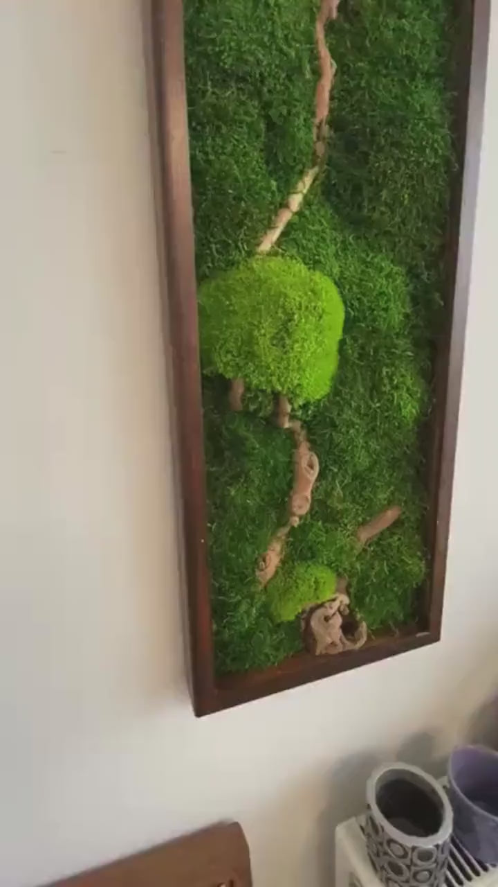 Bring the tranquility of nature indoors with this handcrafted preserved moss and wood wall art. Designed in a vertical wooden frame, it adds warmth, organic texture, and a calming green touch to any room—without the need for maintenance.
