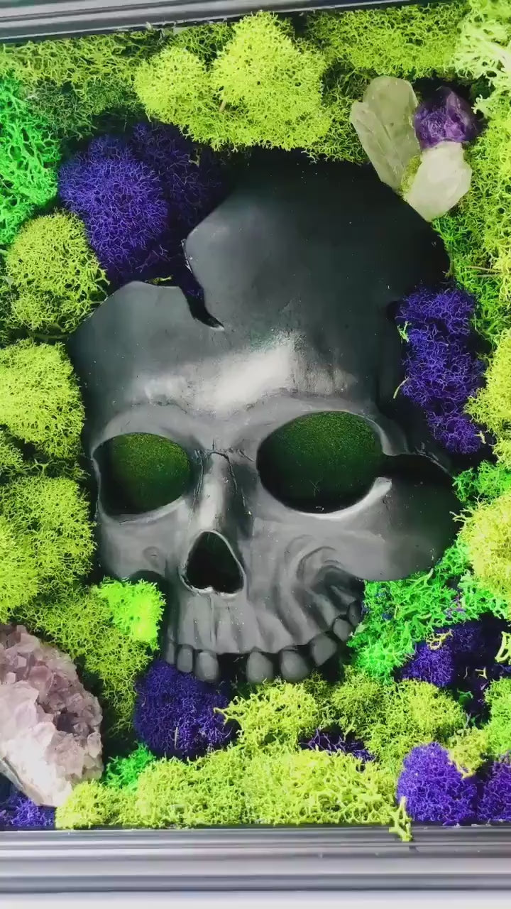 Skull Moss Wall Art – Framed Gothic Halloween Decor | Unique Floral Moss Artwork for Home