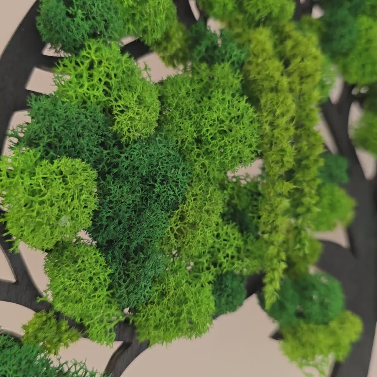 Keep your moss wall art away from direct sunlight, air conditioning vents, or heat sources to preserve its natural color and texture. Ideal placement is indoors, in a space with stable humidity and no direct airflow.