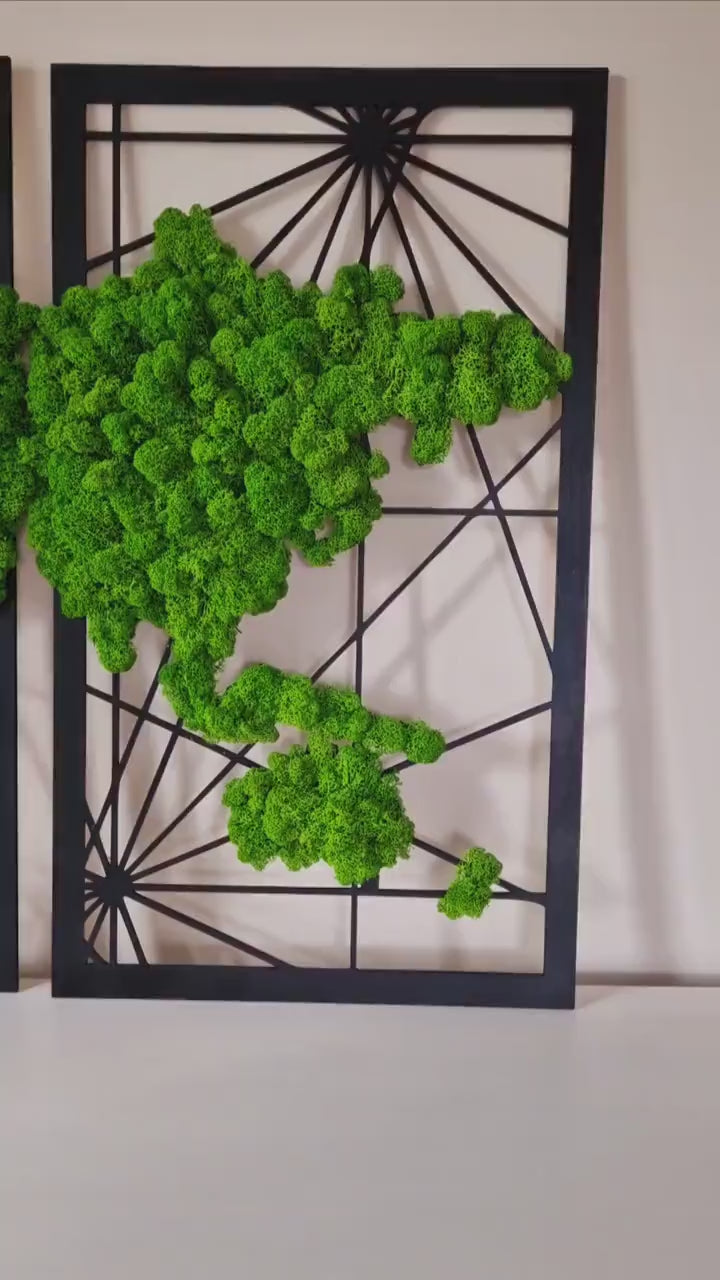 Triptych Moss World Map – 3 Panel Preserved Reindeer Moss Wall Art