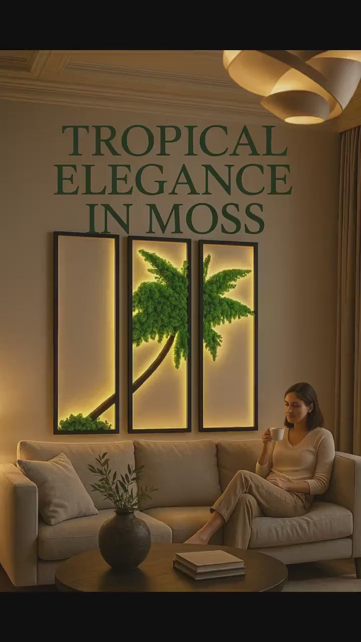Tropical Moss Wall Art Triptych – Large Preserved Moss Panels with LED
